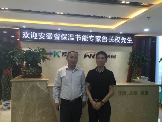 5月29日下午,安徽省保溫行業專家魯長權一行冒著瓢潑大雨蒞臨威耐得指導工作。公司總經理劉必武先生對專家們的到來表示熱烈歡迎,劉總經理詳細向專家一行介紹了威耐得公司近年來的發展情況,以及對未來省內乃至全國保溫行業流行趨勢的判斷,魯總對威耐得取得的成績表示敬佩,希望企業繼續加大對技術研究、新產品研發、工程管理等的資金投入,繼續引領安徽保溫發展的新潮流。會后,賓主一行參觀了由威耐得公司全資投入的中空百葉玻璃新項目,安徽歐泰克建筑節能有限公司CEO朱明先生向專家一行做了專題匯報。