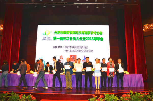 2016年4月22日,合肥市建筑節(jié)能科技協(xié)會一屆三次會員大會暨2015年年會在廬江隆重召開。省住建廳副廳長李建,市城鄉(xiāng)建委副主任馬道云,市城鄉(xiāng)建委副主任陳傳東,市城鄉(xiāng)建委原黨委副書記、副主任章斌,市城鄉(xiāng)建委建筑節(jié)能科技處副處長侯學慶,市質(zhì)量監(jiān)督站副站長趙貴生,協(xié)會會長章茂木、秘書長張慶宇、執(zhí)行秘書長甄茂盛等相關(guān)領(lǐng)導以及300多家會員單位代表、相關(guān)大專院校、科研院所的代表參加了會議。